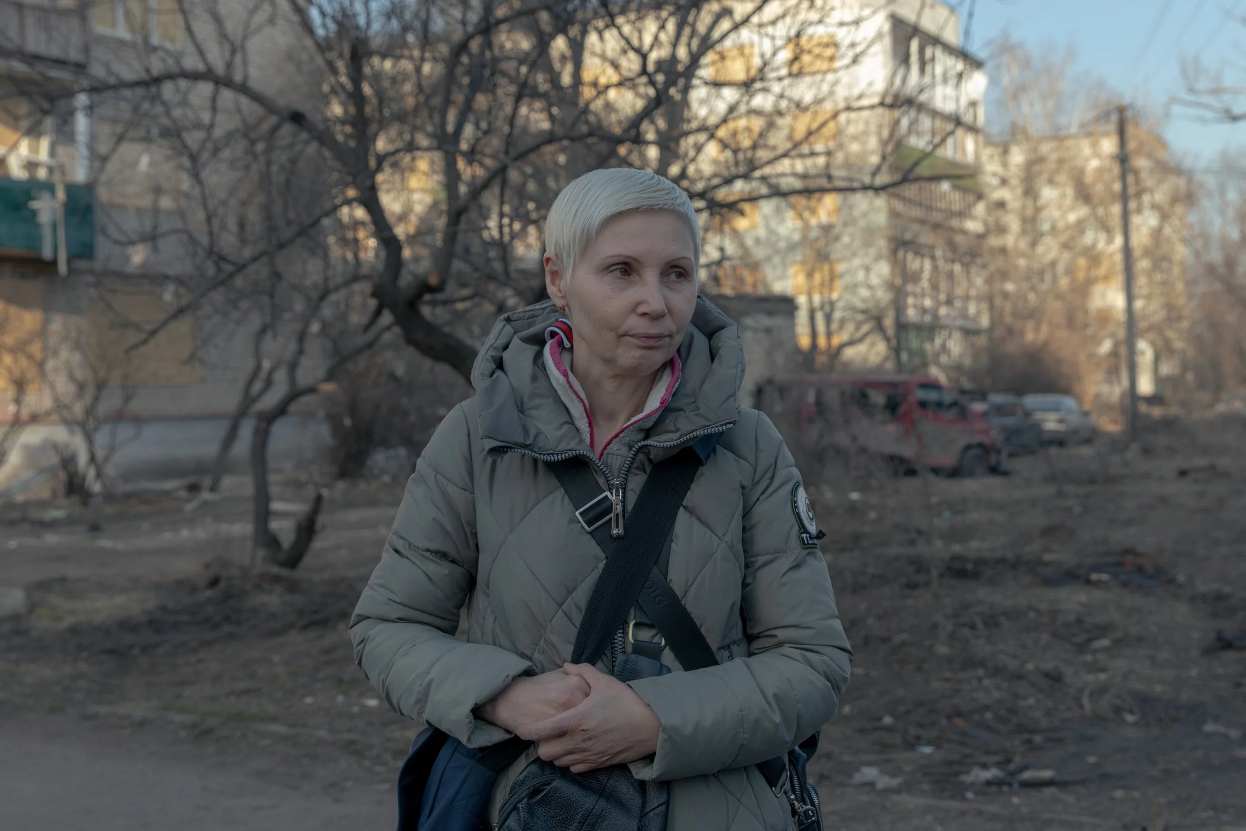 She was at home with her husband when the explosion blew out the windows of their top-floor apartment, sending shards of glass flying into the room. This is not the first time she has lost her home to war. Until 2015, Svetlana lived in Horlivka, outside the city of Donetsk. She moved to Sloviansk to escape the fighting between the Ukrainian army and the Kremlin-backed separatists. Now, beside a few hastily packed bags piled up in the street, she prepares to leave once again.