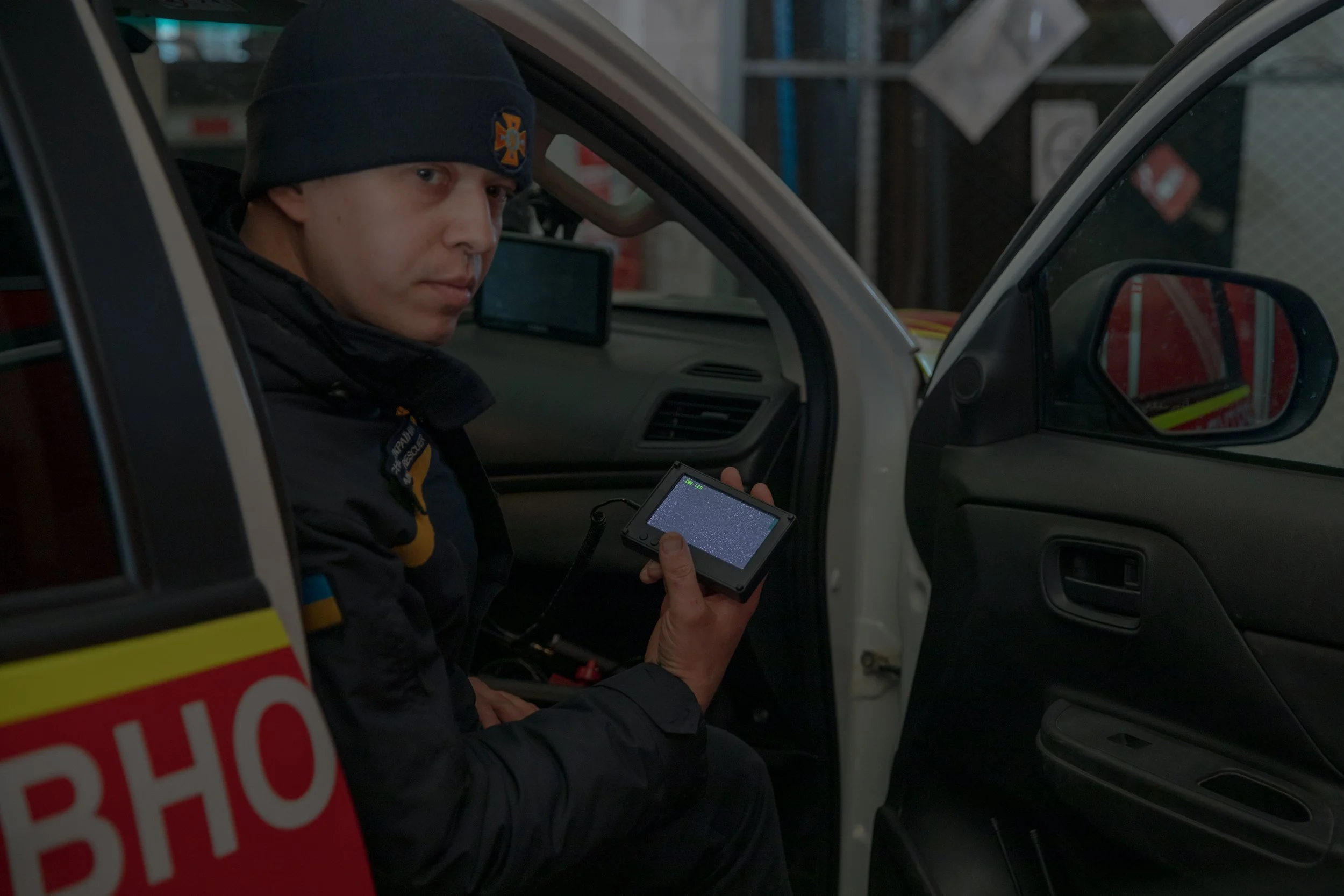 After his family evacuated Sloviansk at the beginning of the full-scale invasion, Roman, 33, stayed behind as a first responder in one of the hardest hit areas of the rear. “It’s not difficult for me to work here, you get used to it,” he jokes, before noting the increasing numbers of FPV drones. Jammers and drone detectors have now become an essential part of their equipment. Since January, three of their vehicles have been struck by enemy FPVs. “They also use drones to monitor the strikes. The other day, they toyed with us above an impact site before flying off.” Grey static fills the small screen of the detector in his car.
