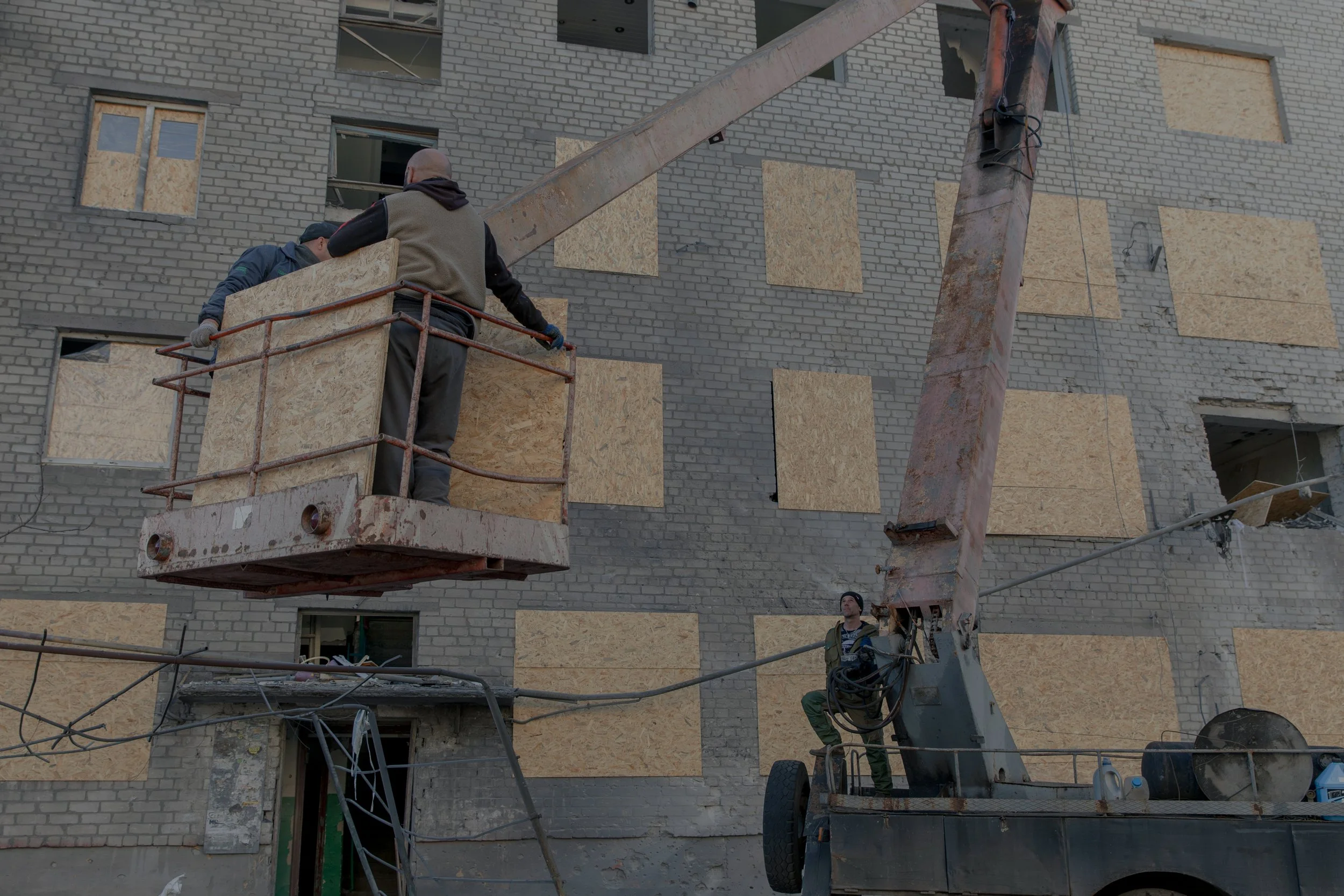 Municipal crews are already repairing the facades damaged by the strike, boarding shattered windows with sheets of plywood and salvaging what can be. Looking at the gaping hole left in the neighbouring building, Svetlana, 51, grips her cut skin.